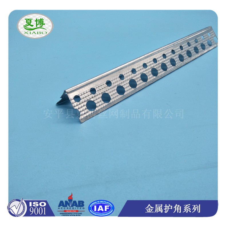 3、夏博金属护角条分冲孔和扩张两种,不但方便打钉且使得护角条与边角部位的石膏板或者其他粘结材料结合的更加牢固。